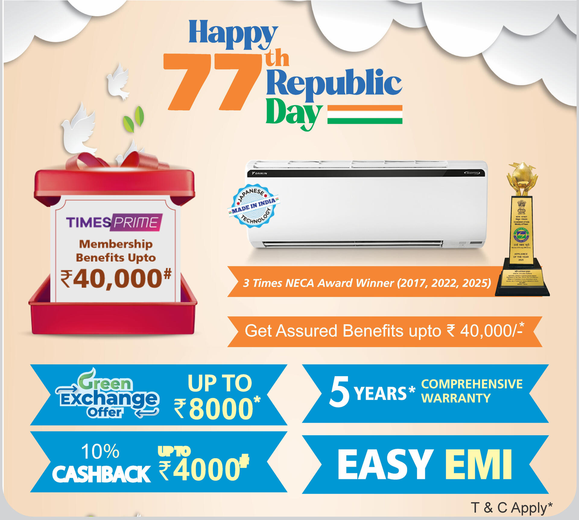 Award-Winning Tech: Experience 3-time NECA award-winning Japanese technology, proudly Made in India.